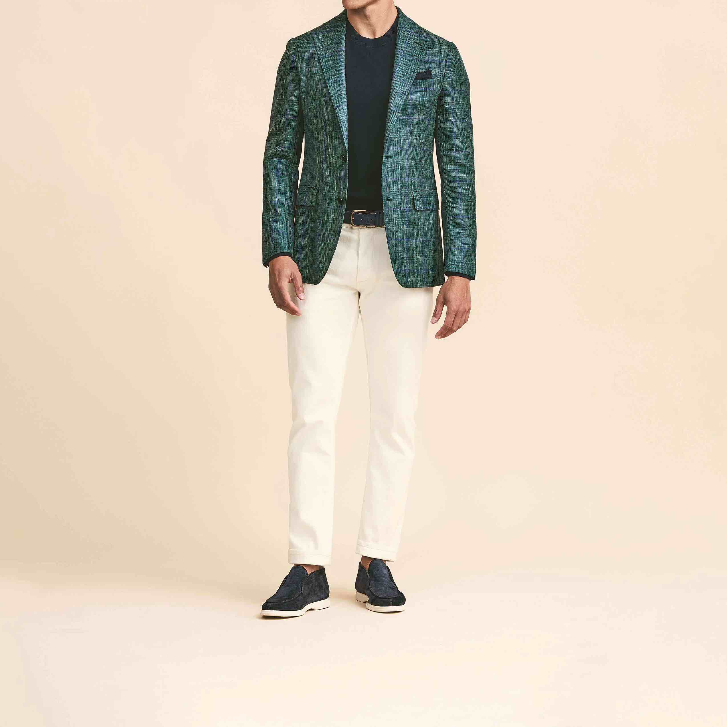 Jacket Dark Green Wool, Silk, and Cashmere Blend Jacket with Light Blue Windowpane Pattern Loro Piana learn more